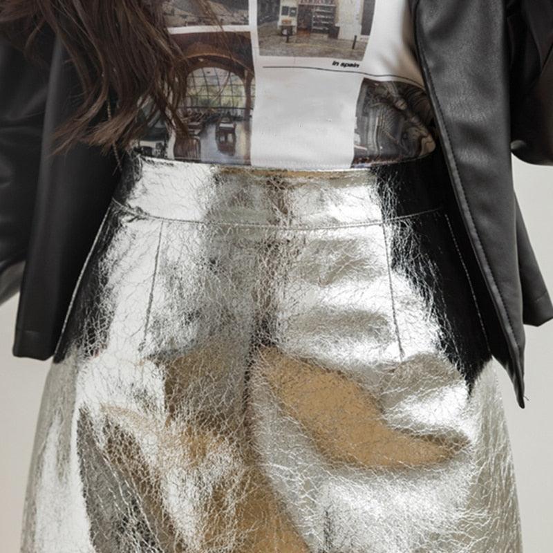 ESTHER METALLIC SILVER MINI SKIRT